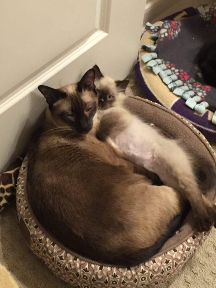 I’ve been volunteering with Seattle Humane for 10 years. Six years ago, I foster failed with a beautiful Siamese cat,